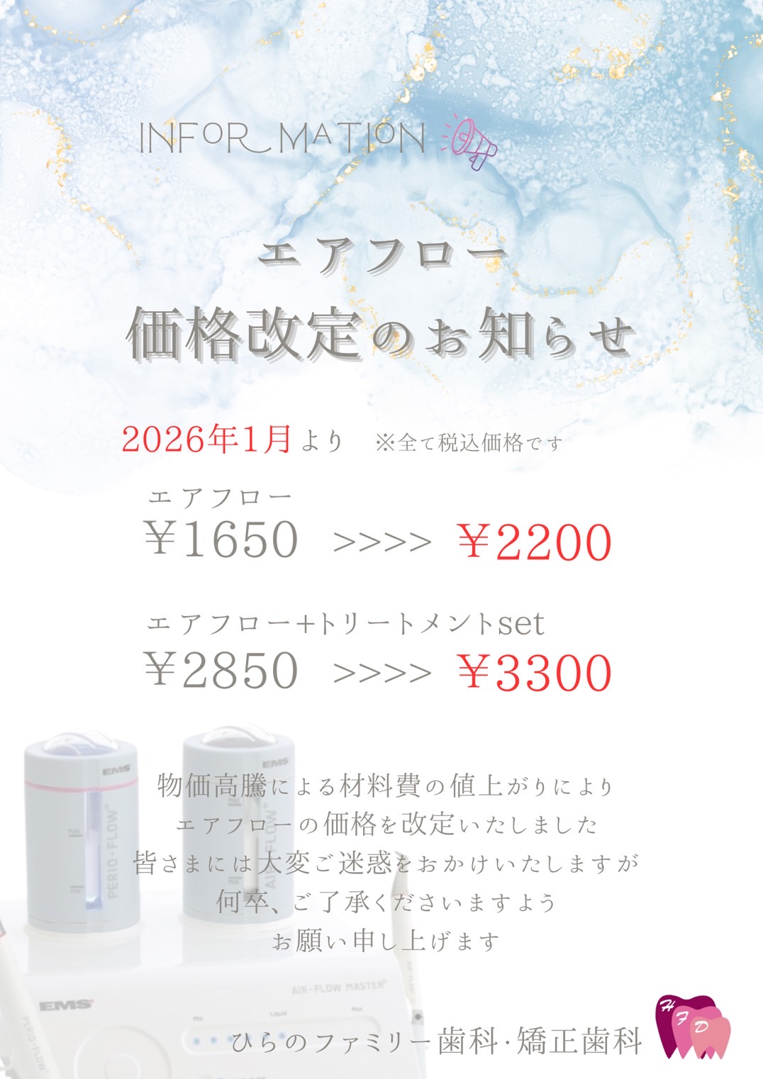 エアフロー価格改定のお知らせ